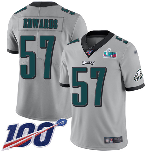 HighQuality Eagles #57 T. J. Edwards Silver Super Bowl LVII Patch Men’s Stitched NFL Limited Inverted Legend 100th Season Jersey Limited stock Order now to cheer for the Eagles