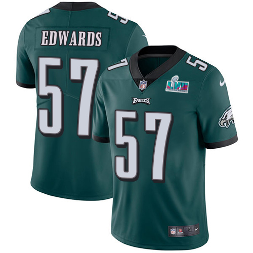 Outstanding Eagles #57 T. J. Edwards Green Team Color Super Bowl LVII Patch Men’s Stitched NFL Vapor Untouchable Limited Jersey Be among the first to own Order your Eagles jersey right away