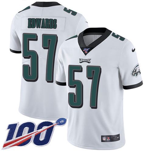 Check out this incredible Cool Eagles #57 T. J. Edwards White Youth Stitched NFL 100th Season Vapor Untouchable Limited Jersey for a stylish look. Order now and show your love for the game!