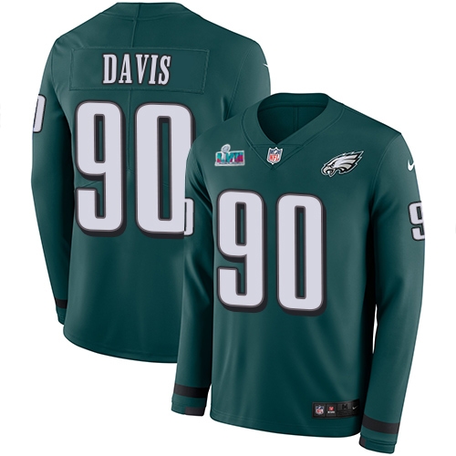 Superb Eagles #90 Jordan Davis Green Super Bowl LVII Patch Team Color Youth Stitched NFL Limited Therma Long Sleeve Jersey Limited stock Order now to cheer for the Eagles