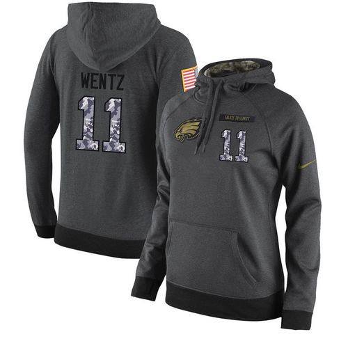 Delightful NFL Women’s Philadelphia Eagles #11 Carson Wentz Stitched Black Anthracite Salute to Service Player Performance Hoodie For a short time available Don’t miss your chance to own an Eagles jersey