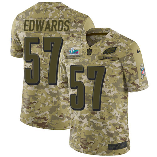 Exceptional Eagles #57 T. J. Edwards Camo Super Bowl LVII Patch Men’s Stitched NFL Limited 2018 Salute To Service Jersey Collectors this is a must have Add this Eagles jersey to your collection