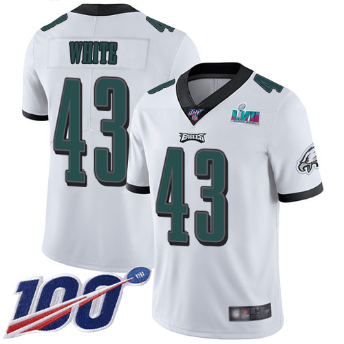 Outstanding Eagles #43 Kyzir White White Super Bowl LVII Patch Youth Stitched NFL 100th Season Vapor Untouchable Limited Jersey Collectors this is a must have Add this Eagles jersey to your collection