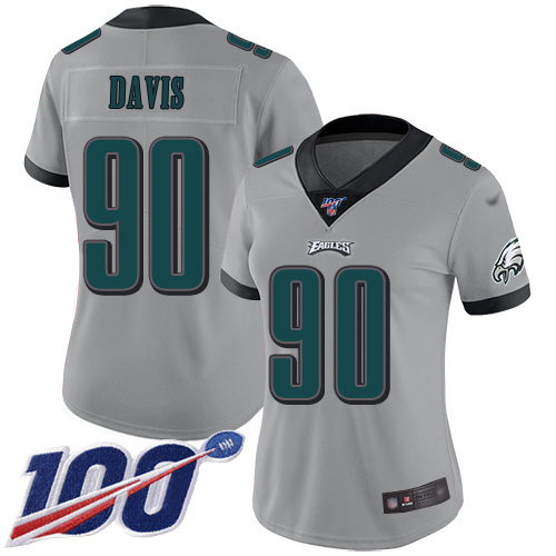 Superb Eagles #90 Jordan Davis Silver Women’s Stitched NFL Limited Inverted Legend 100th Season Jersey to support your favorite players