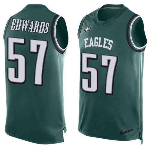 Fantastic Eagles #57 T. J. Edwards Green Team Color Men’s Stitched NFL Limited Tank Top Jersey Collectors this is a must have Add this Eagles jersey to your collection