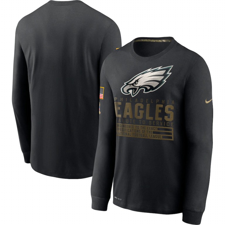 HighQuality Philadelphia Eagles 2020 Salute to Service Sideline Performance Long Sleeve T Shirt Black Retailers boost your inventory Order these popular Eagles jerseys